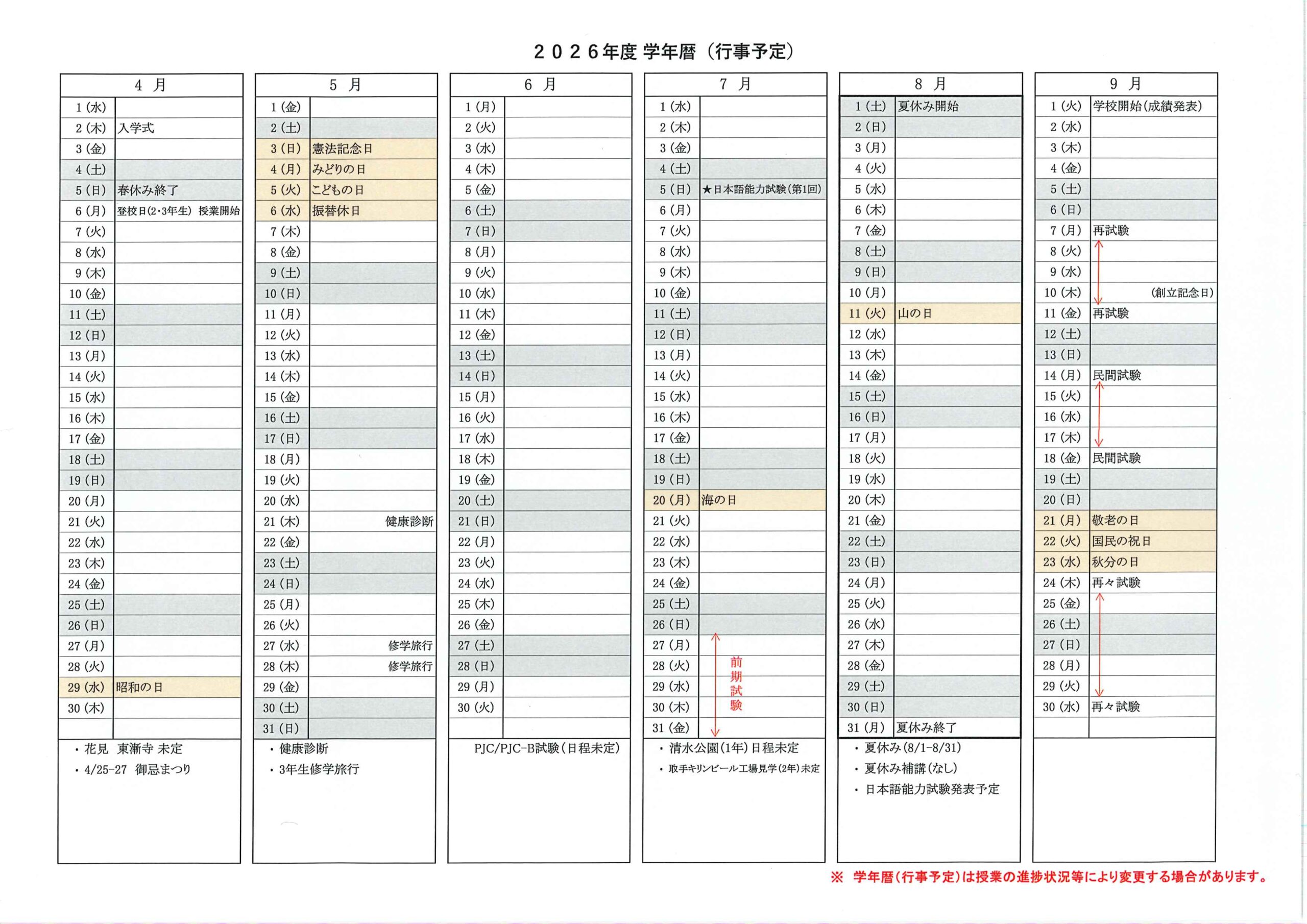 • 春季休業:3月21日~4月5日
