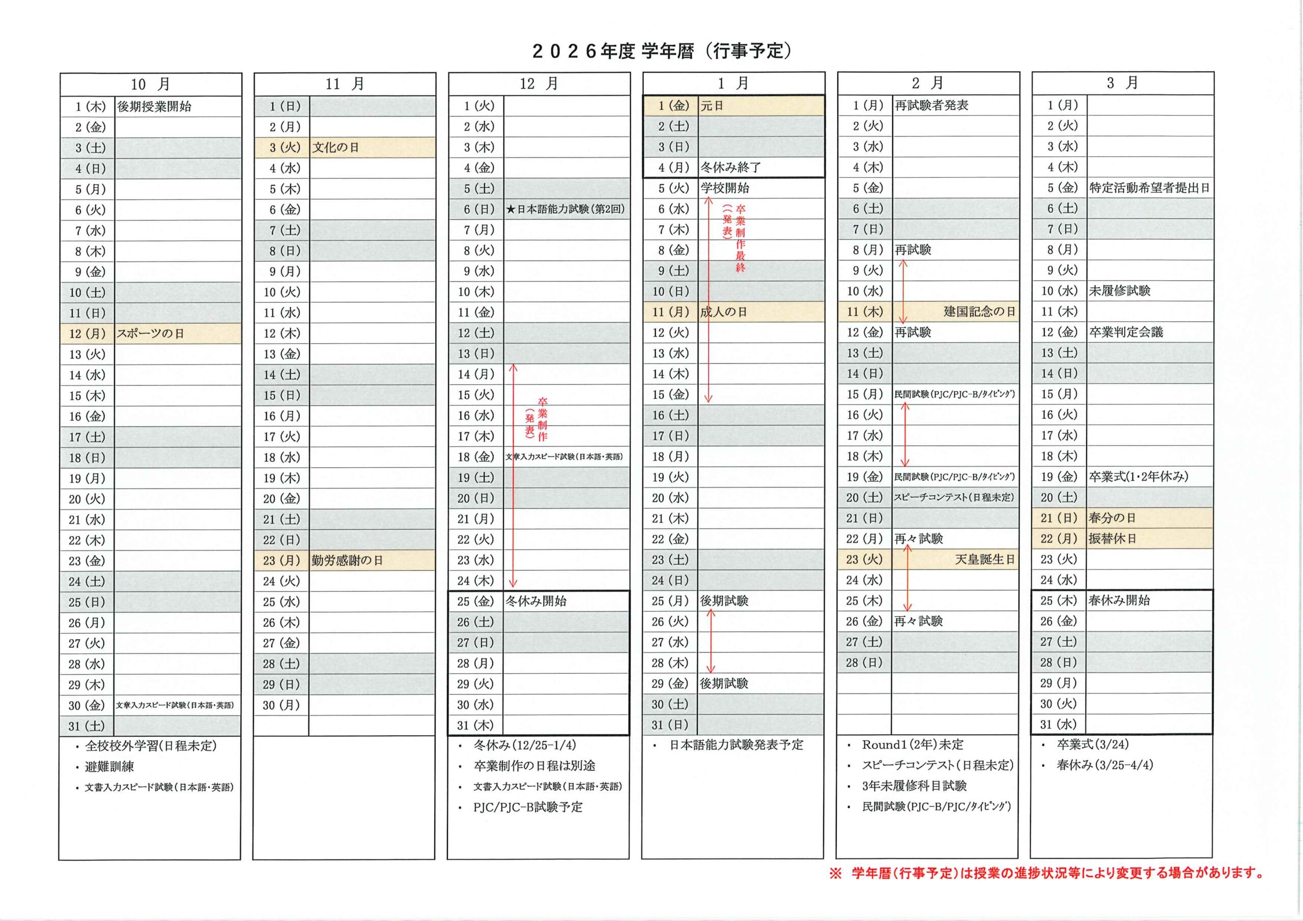 年間スケジュール|入学案内|ITエンジニアを目指すなら、北小金の専門学校二ホン国際ITカレッジへ!【就職・資格支援】